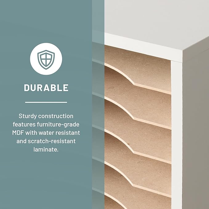 Safco Vertical Literature Organizer, 11 Compartments, Office and Classroom Mailbox with Adjustable Shelves, Wood Paper and Mail Sorter, Modern Gray