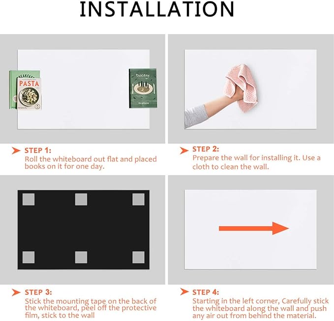 - EASY INSTALLATION -Each of our whiteboard contact paper is equipped with installation accessories and instructions, especially the transparent nano-tape, which can be removed after install and supports multiple times install without damaging the wall