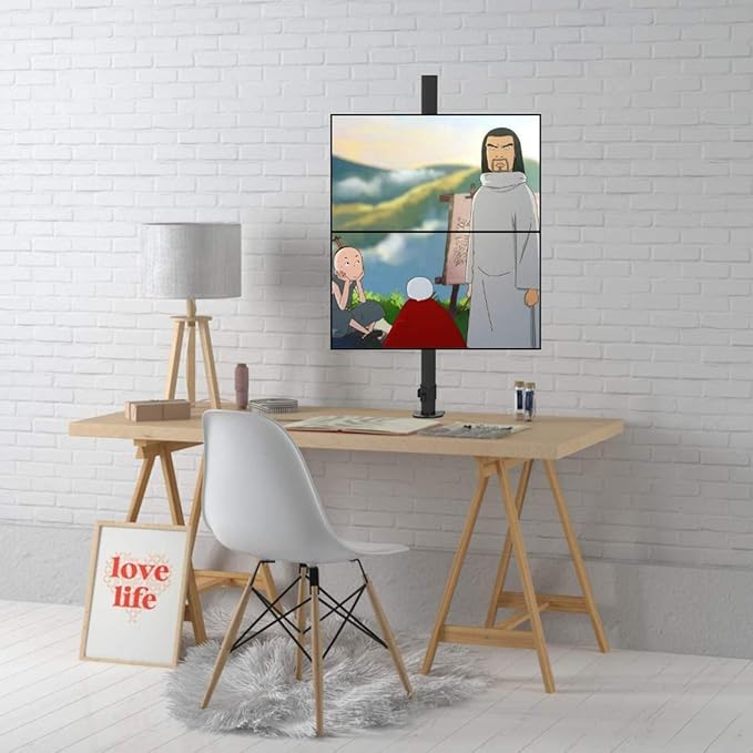 - Aticulation - Rotate 360°, tilt ±45° up and down, swivel ±45° left and right, extra tall height adjustment along the center pole.