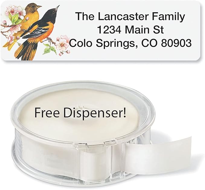 Meadow Birds Rolled Personalized Return Address Mailing Labels with Dispenser, Set of 500, 5 Designs, Small ¾ x 2½ Inch Size, Custom Self-Adhesive Sticker Roll, by Colorful Images