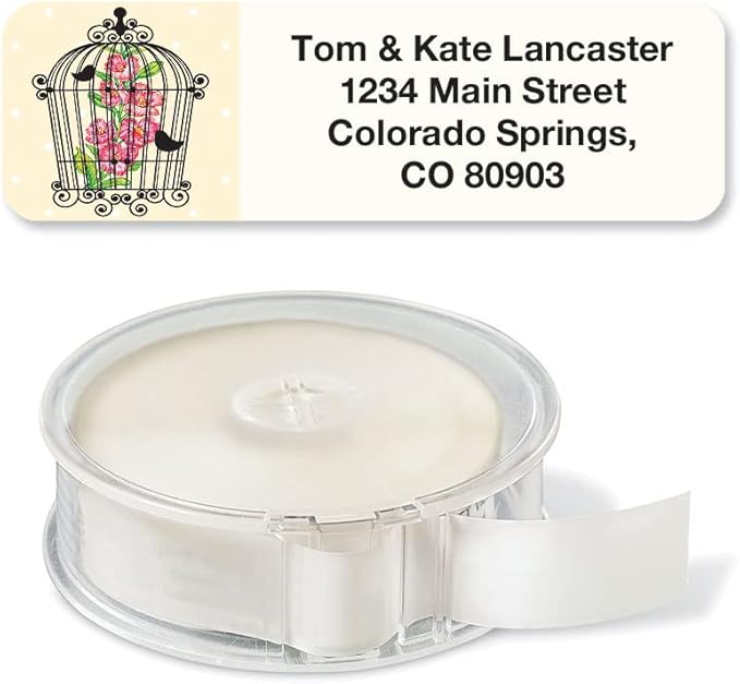Birdcages Rolled Personalized Return Address Mailing Labels with Dispenser, Set of 500, 5 Designs, Small ¾ x 2½ Inch Size, Custom Self-Adhesive Sticker Roll, by Colorful Images
