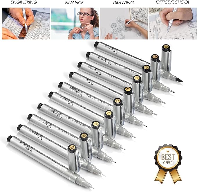 - VARIETY:No Matter how you want to Draw, we have the right tip:0.2mm (005), 0.25mm (01), 0.3mm (02), 0.35mm (03), 0.4mm(04), 0.45mm (05), 0.5mm (06), 0.6mm (08), 1.0mm (10), 2.5mm (20)
