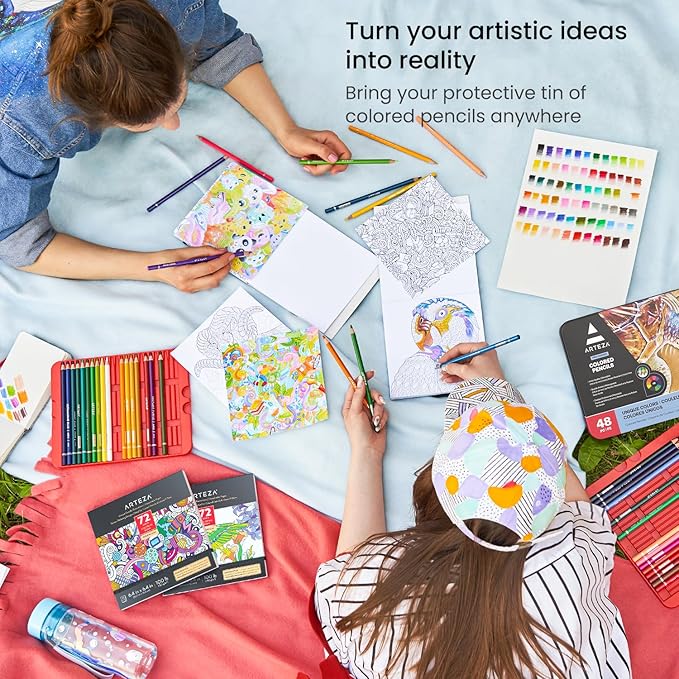 ARTEZA Colored Pencils, 48 Wax-Based Color Pencils, Vibrant Coloring Pencils in Tin Box for Adults, Professional Art Supplies