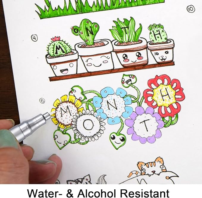 - Water-Resistant Black Pigment Ink - Non-refillable fine point black ink that is water and alcohol resistant. The ink dries quickly, and it doesn't bleed through bible journal pages. It is of archival quality, fade-resistant, acid-free, non-toxic, and odorless