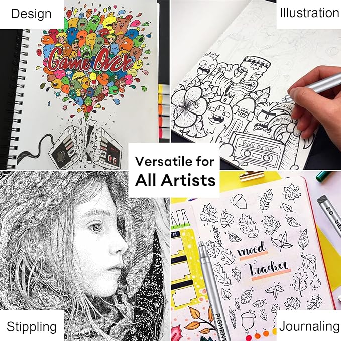- Skip-Free Writing - You can use the artist pens on tracing paper, vellum, and many other paper types as the ink flows smoothly without skipping, smearing, or leaking. You can smoothly glide your expression of art that is consistent and free-flowing, with clean outlines and detailed fine line drawings