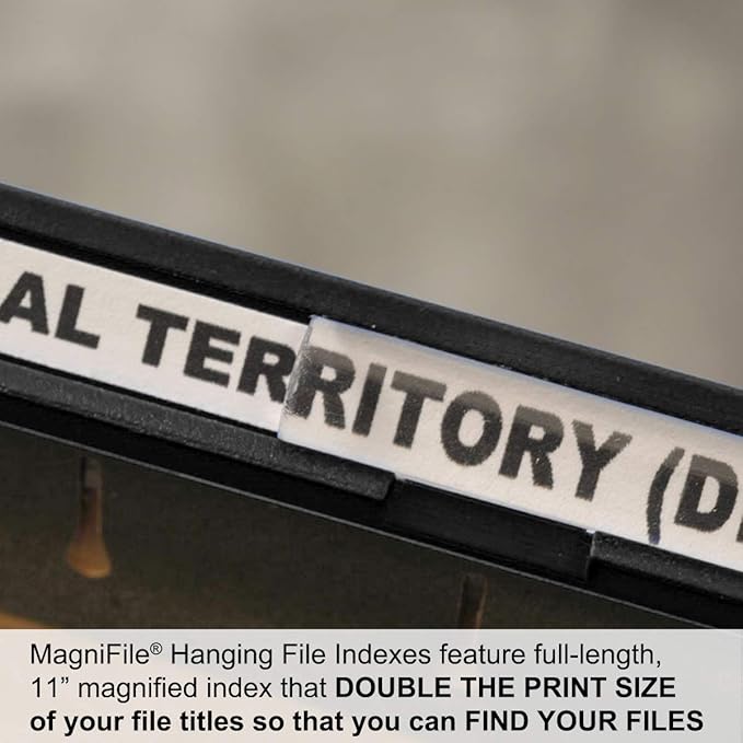 - FIND YOUR FILES FAST – Standard file folder labels are too small, hard to read, and often need replacing. 11" long MagniFile Magnifying indexes DOUBLE THE PRINT SIZE of your file labels and provide more space for detailed file descriptions