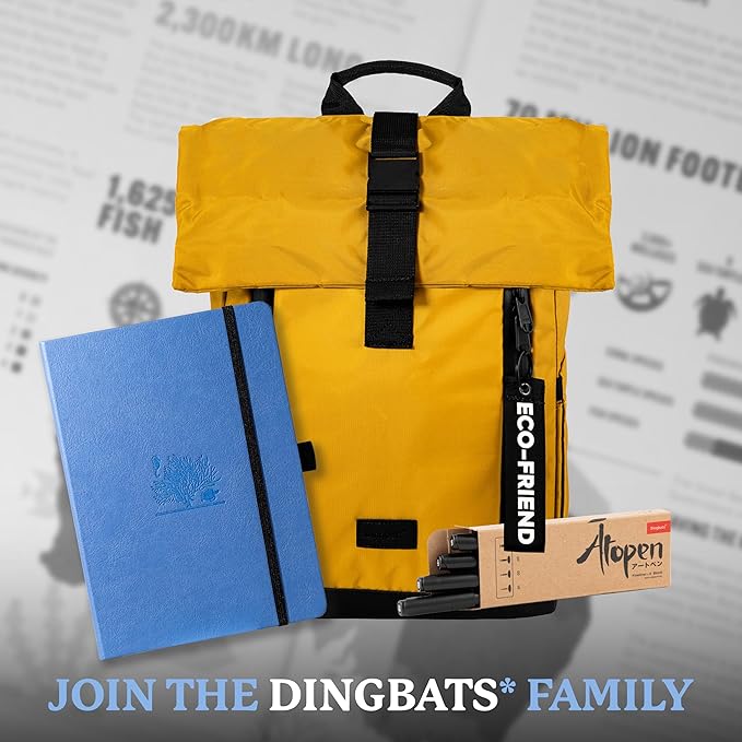 - A5 NOTEBOOK WITH LOTS O' FEATURES: Dingbats notebooks ooze quality - this hardcover bound leather notebook is crafted with PU vegan leather Cream 100gsm pages, 16 pages of perforated paper, an elastic closure and pen holder. It's complete with a silhouette of the Great Barrier Reef, an infographic spread about the endangered region in the endsheets and an inner pocket for a little added detail - the perfect gifts for loved ones