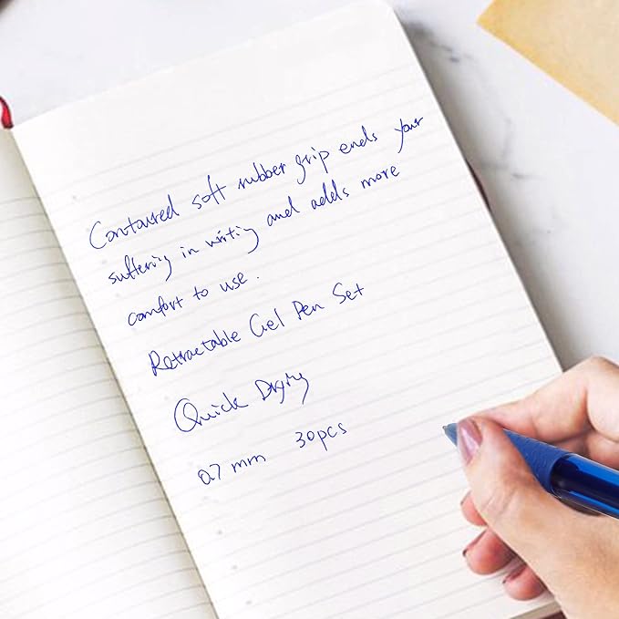 - Feela 30 Retractable Gel Pen set comprises 15 blue ink retractable gel pens and 15 blue ink refills.All with 0.7mm tip point.