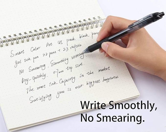 Smart Color Art 45 Pack Black Gel Pens, Retractable Medium Point Gel Ink Pens, Smooth Writing, Comfort Grip, Unisex