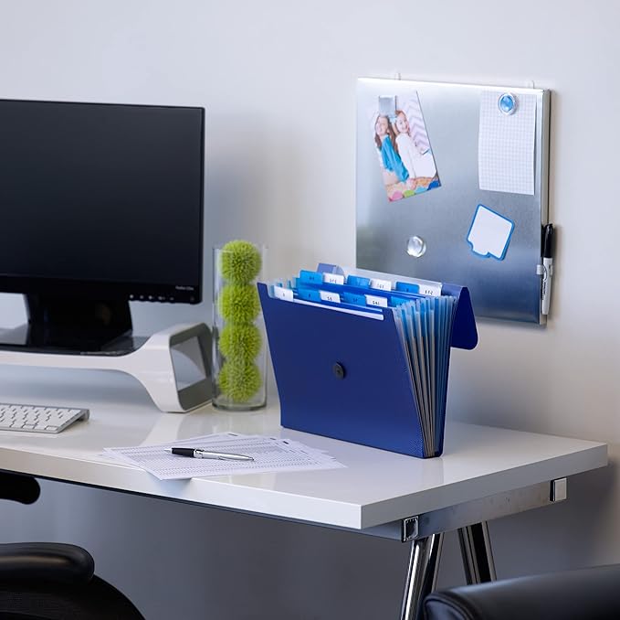 - Includes 2 letter size (13” W x 10” H) embossed poly organizers in navy blue with 12 pockets and indexed dividers to keep your documents sorted wherever work takes you