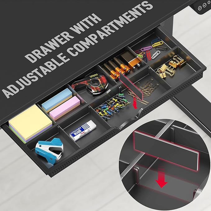 SHW 48-Inch Electric Height Adjustable Standing Desk with Drawer, Memory Preset and Cable Management Tray, Black