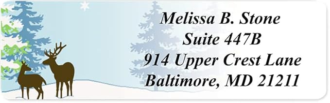 Festive Deer Designer Rolled Address Labels with Elegant Plastic Dispenser