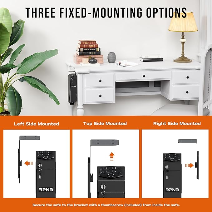 - Desk-Mounted Design : Slim Vertical Design stores great under a desk or nightstand, discreetly on a bookshelf, or inconspicuously in a vehicle. For added convenience, mountable from right, left, or top side, depending on desired preference
