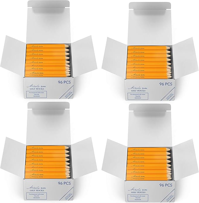 - Each Inner Box is Packed With 96 Premium Miniature #2 Pencils. Each Pencil is Made From High-Quality Wood for Clean Easy Sharpening, But They Are Already Presharpened So There's No Need To Sharpen, You Can Just Toss One In Your Shirt Pocket and Hit The Golf Course.