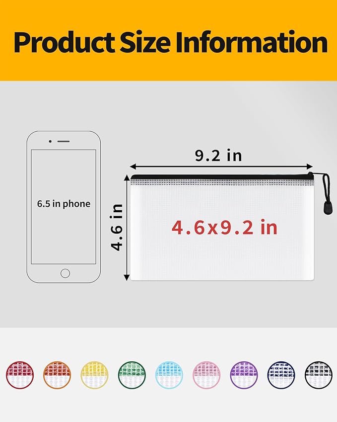 - DURABLE & PORTABLE: SUNEE zipper file bags are made of thick vinyl material, water-resistant, moisture-resistant. Each metal zipper is equipped with a rope loop, which is strong and durable. It can be used as a hanging ring and ready to hang