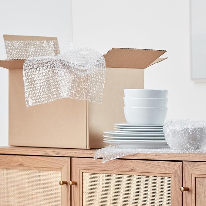 Amazon Basics Bubble Cushioning Wrap Packing Material for Fragile Items, 12-Inch x 100-Foot Long Roll, Large, Clear