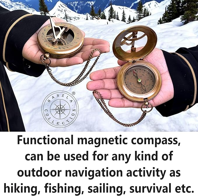 - It is fully working direction magnetic compass. Sun clock shows all direction and time in vintage style engraving on the top of compass. Customize personalization engraving on the back option is also available. We also provide all broze gift with custom text engraving.