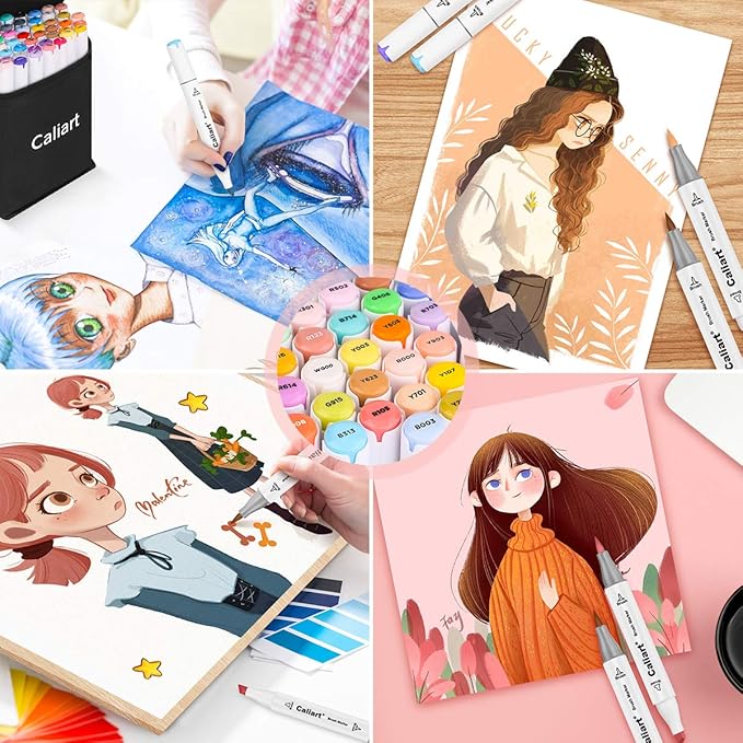 Caliart Alcohol Brush Markers, 51 Colors Dual Tip Artist Brush & Chisel Tip Sketch Art Markers, Aesthetic Cute Preppy Stuff School Supplies, Pens for Lettering Cards Drawing Mothers Day Gift for Mom