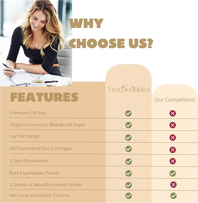 - Vegan Leather Cover with Forest-Friendly Paper: Crafted with an elegant dot grid journal cover, this dot journal notebook is made from sustainable materials. The premium vegan leather finish adds a touch of sophistication while staying eco-conscious.