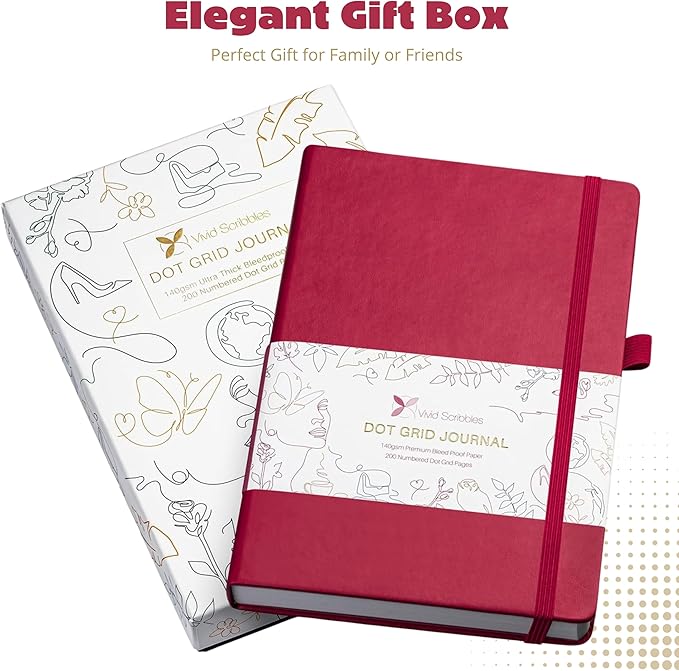 - Includes Gift Box and Stickers for Creative Customization: This journal with dotted pages comes beautifully packaged in a premium dot notebook gift box, making it an ideal present for journaling lovers. Personalize your pages with included stickers for a creative and fun experience!