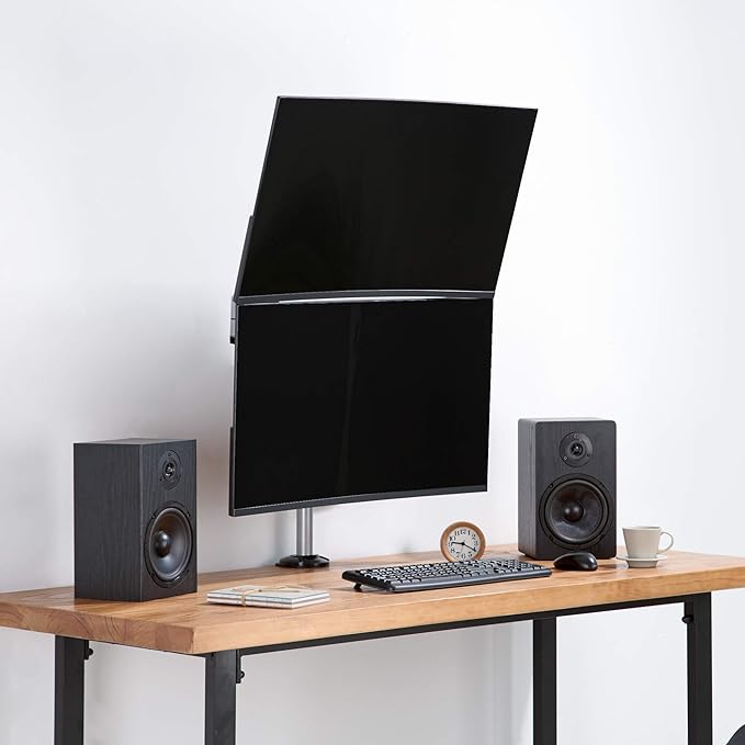 - FITS 17" TO 32" SCREEN - Dual vertical stacked monitor desk mount fits most of flat/curved/ultrawide computer monitors up to 19.8 lbs (9 kg) each in weight with VESA 75x75mm or 100x100mm mounting holes.