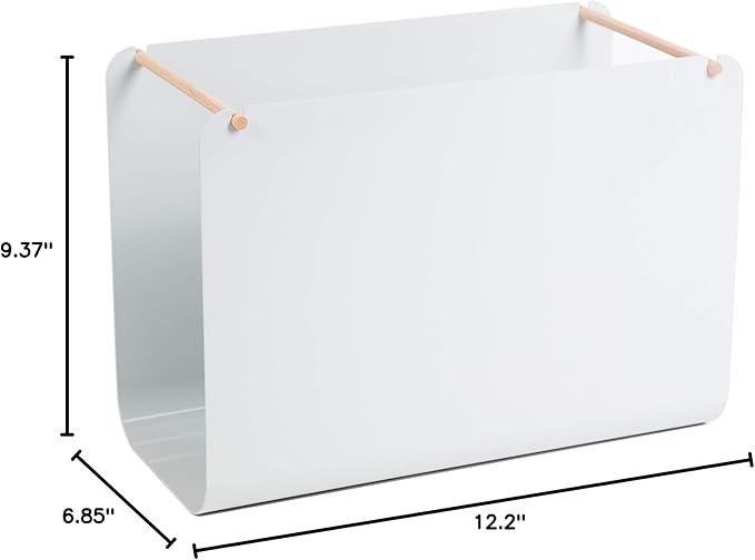 - Bent metal hanging file organizer measures 9.37" H, 12.2" W, 6.85" D