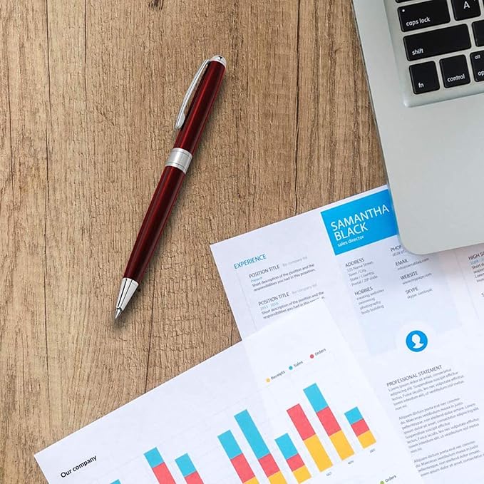 - Premium Black Ink Pen: Elevate your style with the red pens featuring a sleek metal body in a stunning red finish; Perfect for men, women, flight attendants, police officers as uniform pen, or wedding guest books as guest book pen; Measures 5.47" long with 0.39" diameter for a professional look
