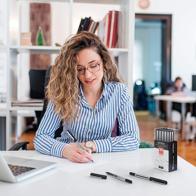 ARTEZA Rollerball Pens, Pack of 20, 0.5mm Black Liquid Ink Pens for Bullet Journaling, Fine Point Rollerball, Office Supplies for Writing, Taking Notes & Sketching