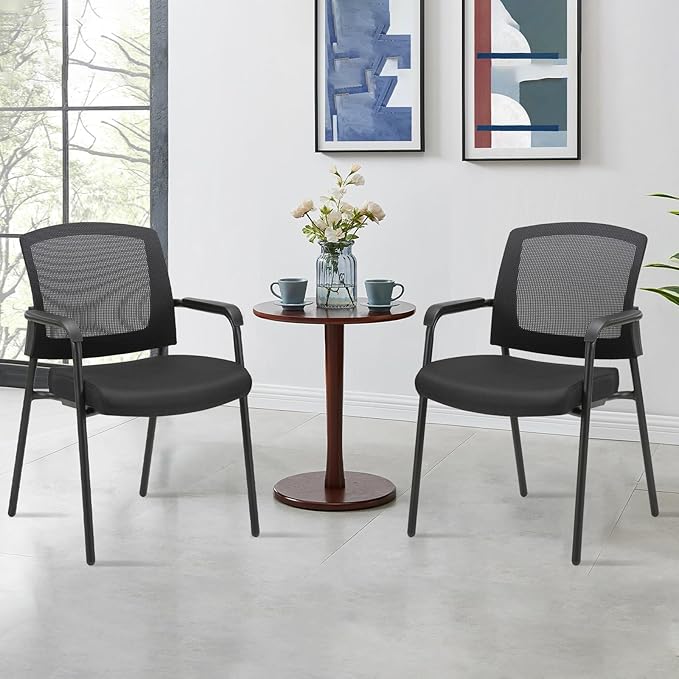 CLATINA Office Reception Guest Chair Mesh Back Stacking with Ergonomic Lumbar Support and Thickened Seat Cushion for Waiting Conference Room Black 2 Pack