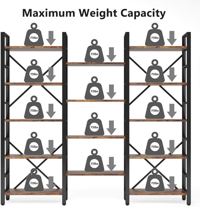 Tribesigns Triple Wide 5-Shelf Bookcase, Etagere Large Open Bookshelf Vintage Industrial Style Shelves Wood and Metal bookcases Furniture for Home & Office, 70 inch