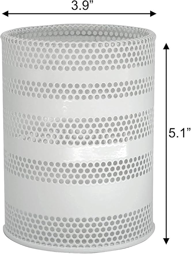 Metal Mesh Pen Pencil Cup Holder Stand Office Desk Organizer Stationery Caddy Makeup Brush Holder, White (Large)