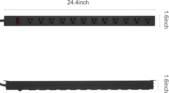 - Multiple Protection System: Metal mount power outlet has indicator light switch with 15 amp circuit breaker, provide device safety for protection from short circuiting, over-current, over-temperature, over-voltage. Hevy duty power cord can protects circuits from fire, impact or rust, and prevents dents and scratches. This long power strip Rating: 15A, 125V, 60Hz, 1875W.