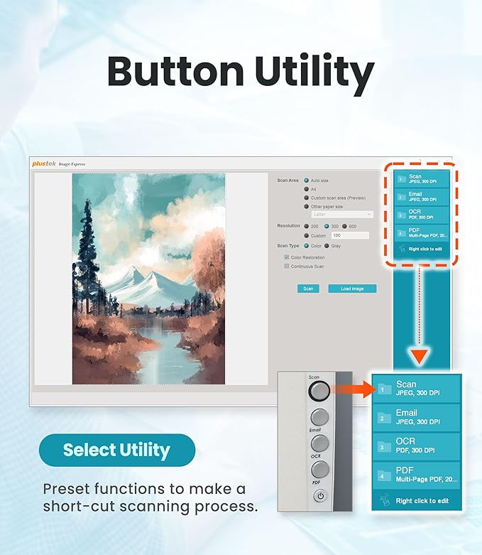 - 【One-Key Operation】- With 4 pre-configured button, each option can be set for destination, file type, file name and various other choices. You can just touch button finish all job.