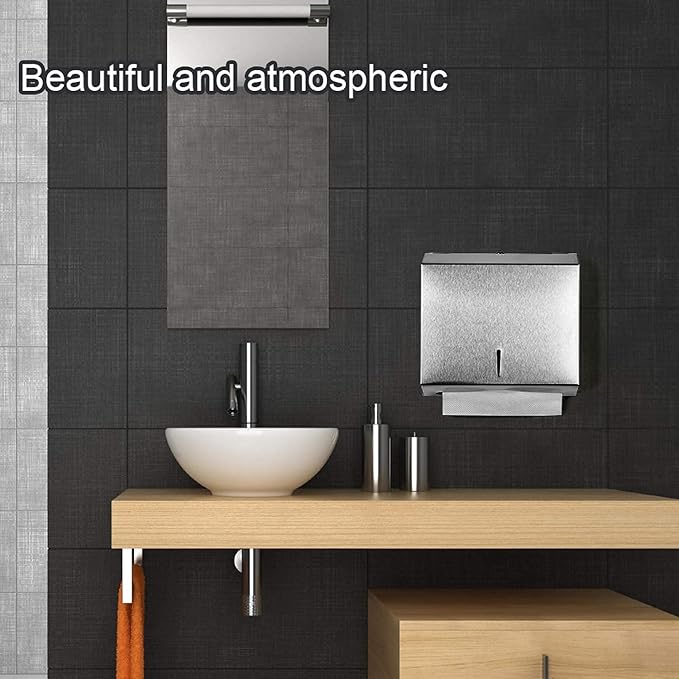 Wall-Mounted Comercial Paper Towel Dispenser, Brushed Stainless Steel Bathroom Hand Towel Dispenser with Lock Design, Large Capacity 250 C-Fold 300 Multi-Fold Capacity