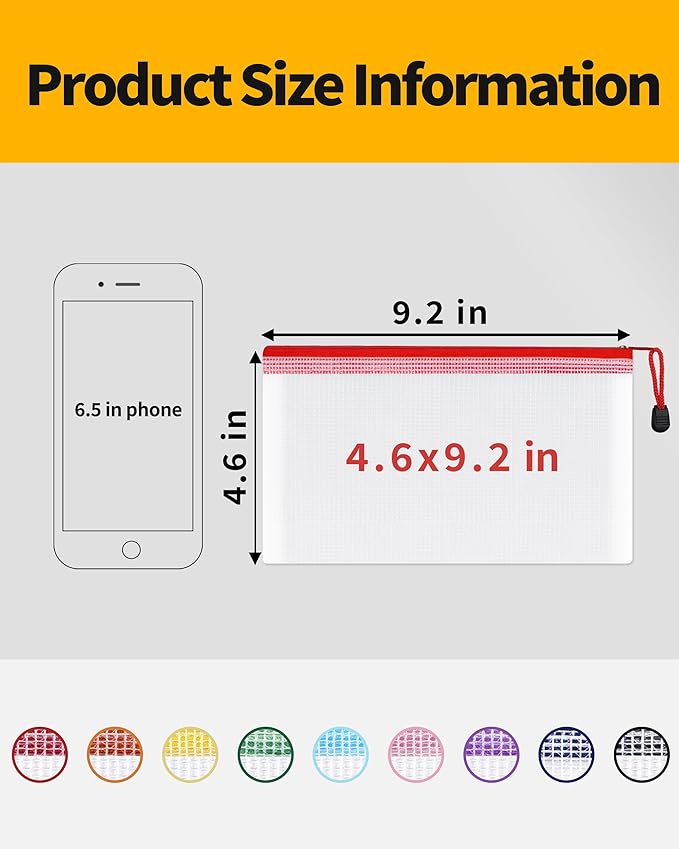 - PACKAGE CONTAINS: You will get a set of 18 Packs 4.6x9.2 inches multi-colored plastic zipper pouches for the most paper size of letter-size prints or smaller document storage. It can help you organize your miscellaneous items to meet your daily life and work. Manufacturer recommended age 3 years and up