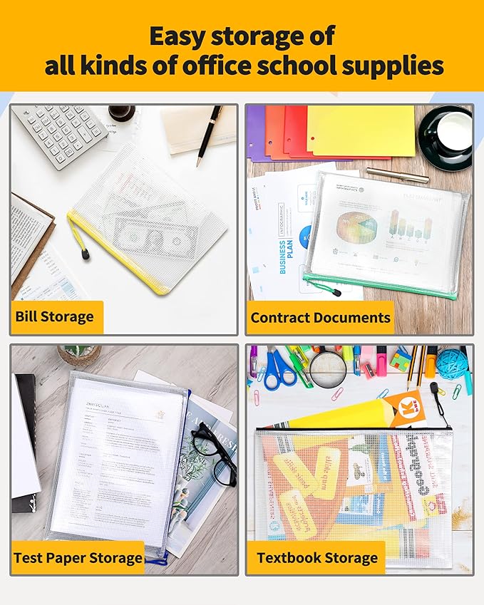 - DURABLE & PORTABLE: SUNEE zipper file bags are made of thick vinyl material, water-resistant, moisture-resistant. Each metal zipper is equipped with a rope loop, which is strong and durable. It can be used as a hanging ring and ready to hang