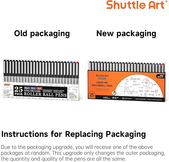 - CONVENIENT VALUE PACK: Shuttle Art 25 pack 0.5mm roller ball pens contains 3 colors: 21 black, 2 blue, 2 red. 25 Combo Pack will fully meet your demands of daily writing, marking and signing.