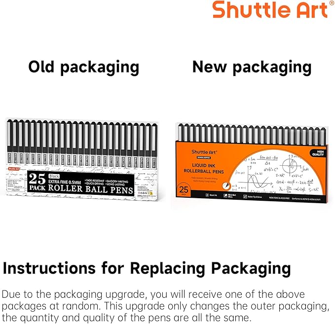 - CONVENIENT VALUE PACK: Shuttle Art 25 pack 0.5mm roller ball pens are all with black ink. 25 Combo Pack will fully meet your demands of daily writing, marking and signing.