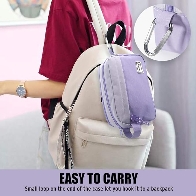 Sooez High Capacity Pencil Case, Big Pencil Bag Pouch Box Organizer Pen Case, Portable Journaling Supplies with Easy Grip Handle & Loop, Asthetic Supply for Girls Adults, Purple