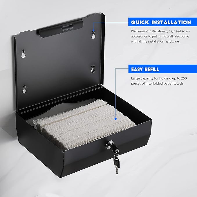 Wall Mounte Commercial Paper Towel Dispensers, 10.4" L x 3.3" D x 8.3" H, Stainless Steel C-Fold Multifold Hand Paper Tissue Holder with Lock