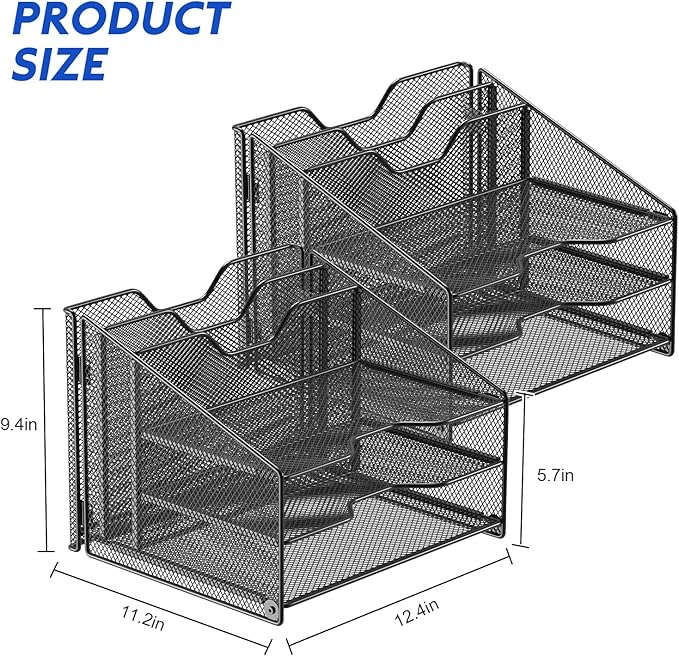 Samstar 2 Pack Mesh Desk File Organizer Letter Tray Holder, Desktop File Folder Holder with 3 Paper Trays and 2 Vertical Upright Section, Black