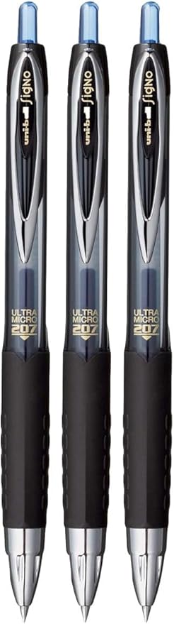 - THIS BUNDLE INCLUDES: These Signo pens are everyone's favorite! The pack includes 3 blue, Signo 207 pens, all of them in 0.38mm point. These are original and authentic pens. In order to keep them neat and organized, you will be receiving a free plastic pouch for easy storage and great durability by Advantage Gifts. We especially combined the right colors to create this bundle. Be sure to check out our other great pen pouches and mixes.