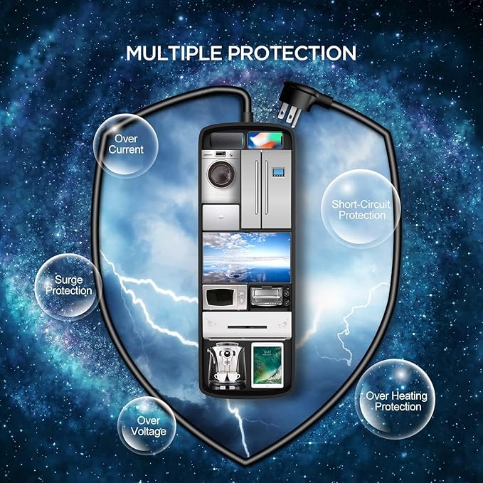 - 【All-Round Protection】 - Witeem 4360 joules surge protector with overload protection protect your devices against power spikes and fluctuations. The fire-retardant casing which is able to stand temperature up to 1382℉(750℃) together with a overload protection system ensure the peace of mind for you and your family. The power stripe is ETL Listed and FCC Certificated.