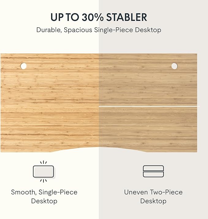 - AMPLE WHOLE-PIECE DESKTOP: With its whole-piece 1” eco-friendly desktop, this standing desk provides plenty of room for your computer setup, documents, and accessories, creating a well-organized and productive work environment. Due to hand measurements, desktop dimensions may vary slightly by 0 to 1”.