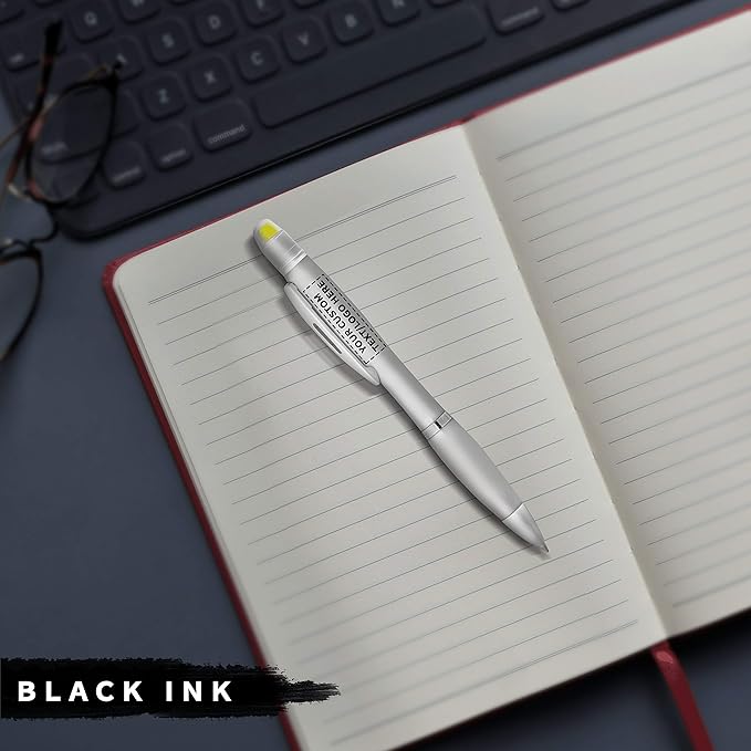 DISCOUNT PROMOS 10 Marathon Gel Highlighter Pens Pack - Customizable Text, Logo - Twist Mechanism, Ballpoint - Silver