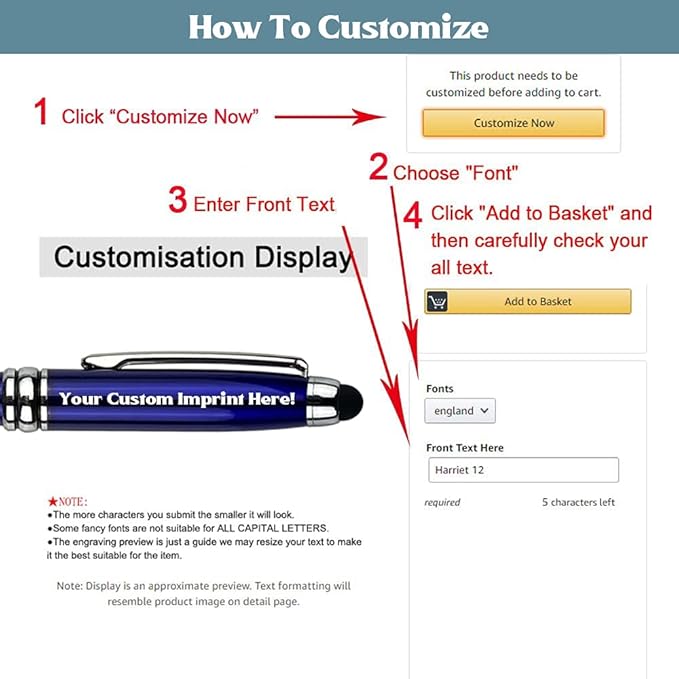 - FREE PERSONALIZATION You can have up to 40 characters (including spaces) on each line, up to 2 customized lines are free. we use laser engraving technology to engrave the text on the pen without fading. As long as you click the "Customize" option, you can easily customize it. Beautiful appearance, suitable for gift.