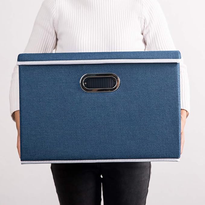 - 【Fashionable Bins】Designed to match interior decor and style in any room in the home or office. Enjoy the relaxing ambiance of the soft royal blue and natural white neutral color scheme.