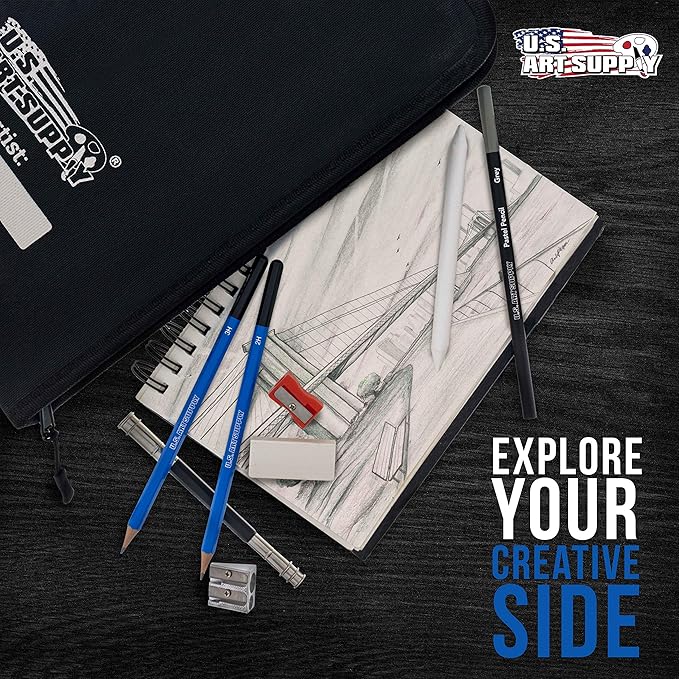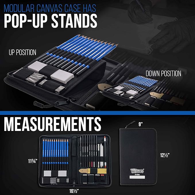 - Complete 44-piece professional drawing and sketching art set that includes every tool and sketch pad you need to create amazing sketches! The zippered carrying case has all the tools conveniently stored in an elevated pop-up organizer providing easy access to them!