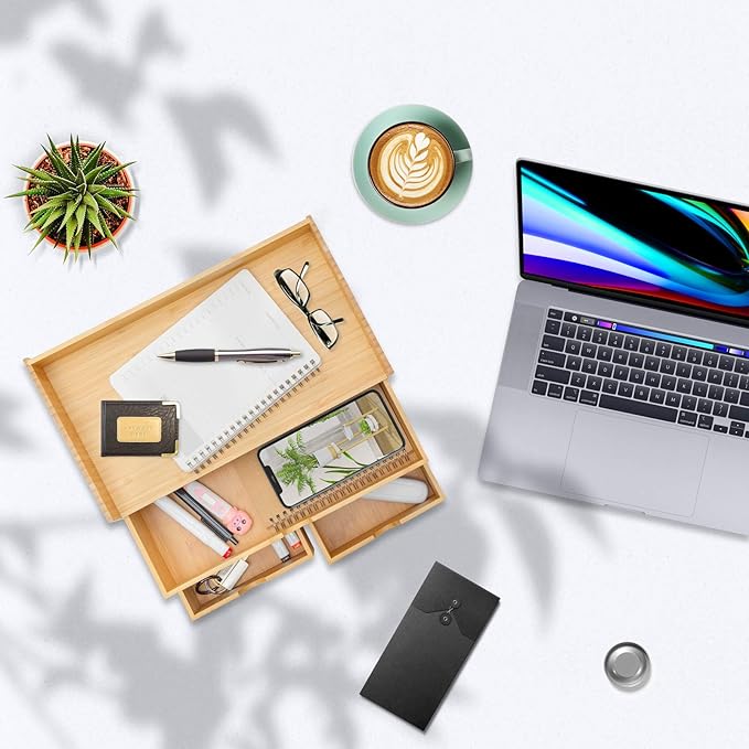 - 【PERFECT GIFT】This bamboo desktop drawer organizer is not assembled and is easy to maintain and clean. It makes for a thoughtful and practical gift for your friends, family, and colleagues looking for a better storage solution