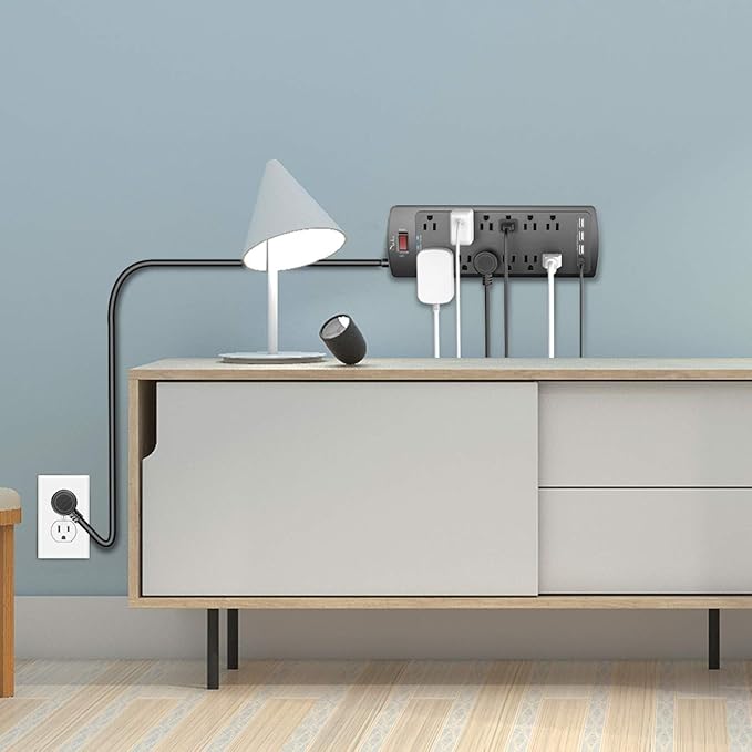 - 【Safety and Certificate】- ETL safety certified, with extension cord and other major components certified by UL. The over current protection switch limits the power strip's working current to certain setting, so it will not get hot during usage. Environmental protection and fire-resistance PC shell with flame retardant at 1382℉ makes it more durable and longer lifetime.